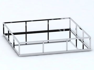 Modern design square silver frame mirror base tray. Designed with an elevated edge to prevent rice & sugar almonds from falling out.